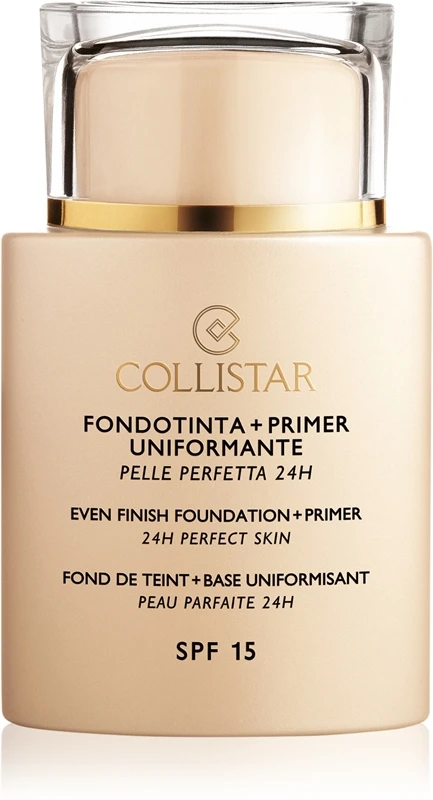 Le fond de teint Collistar Even Finish Foundation+Primer 24h Perfect Skin unifie la teinte de votre visage et cache les petites imperfections.