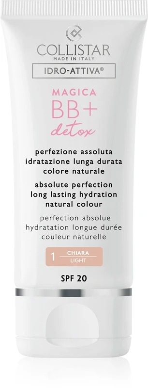 Dorlotez votre peau avec un soin 3 en 1 : une hydratation efficace jusqu’à 72 heures, une protection du rayonnement solaire avec indice 20 et une couverture légère grâce au propriétés de la crème BB. Tout cela en une seule crème BB SPF 20 hydratante Collistar MAGICA BB + Detox. Votre peau va l’adorer !